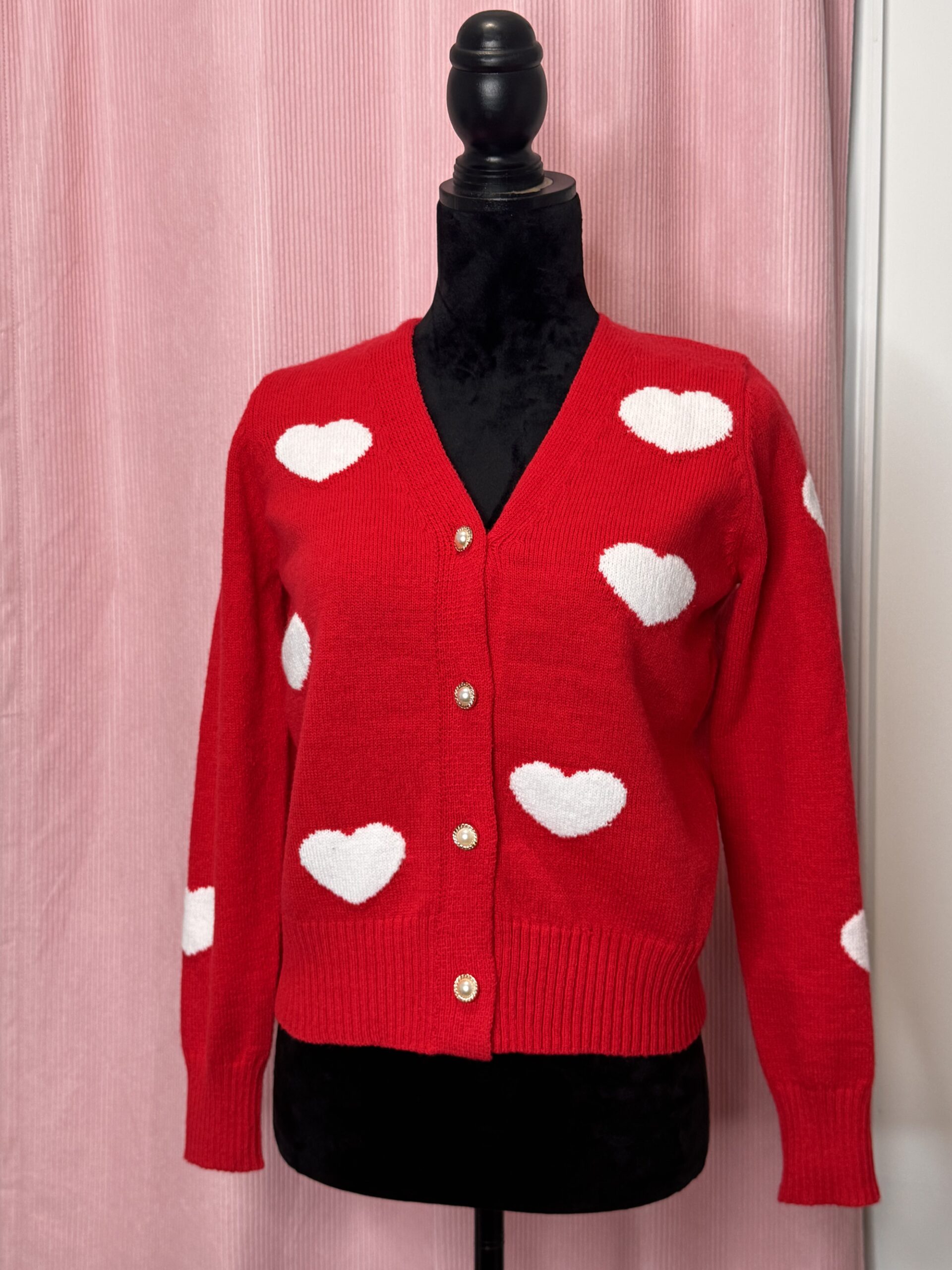 Description: soft and modest red winter sweater with heart print